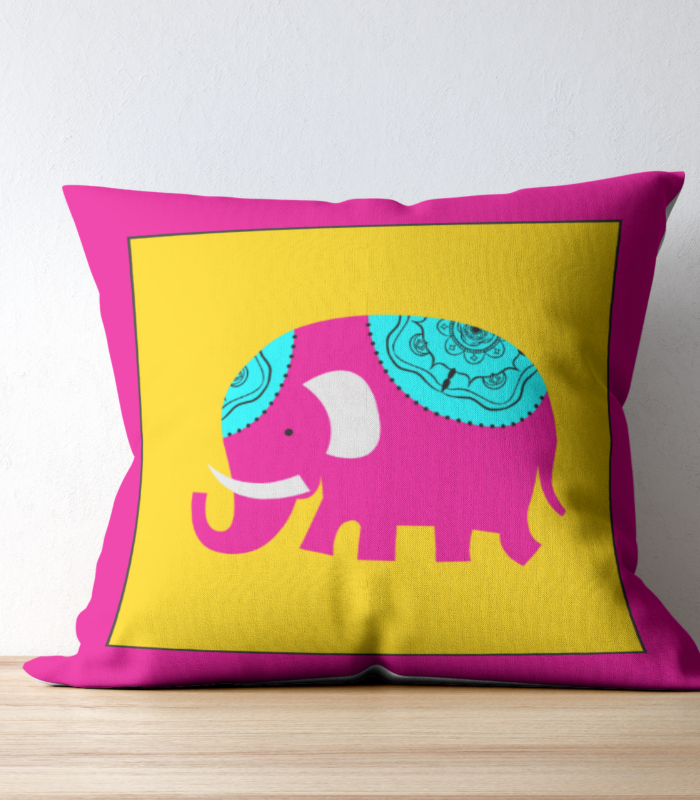 Majestic Elephant Print Cushion Cover – Premium Poly Canvas, Vibrant Digital Print, 16×16 Inch, Perfect for Home Decor
