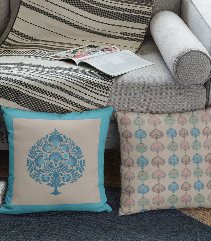 Elegant Blue and Firozi Silk Cushion Covers: A Statement of Luxury and Sophistication