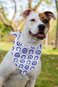 dog bandana, stylish dog accessories, evil eye dog scarf, digital print pet bandana, soft & breathable pet scarf, custom dog bandana, adjustable pet wear, washable dog scarf, fashionable dog bandana, pet fashion, trendy pet accessories, protective pet wear