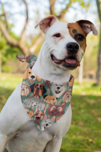 dog bandana, stylish pet accessories, multicolor brown dog scarf, trendy dog bandana, digital print pet bandana, soft breathable pet scarf, adjustable dog scarf, custom pet bandana, washable dog scarf, fashionable pet wear, luxury pet accessories