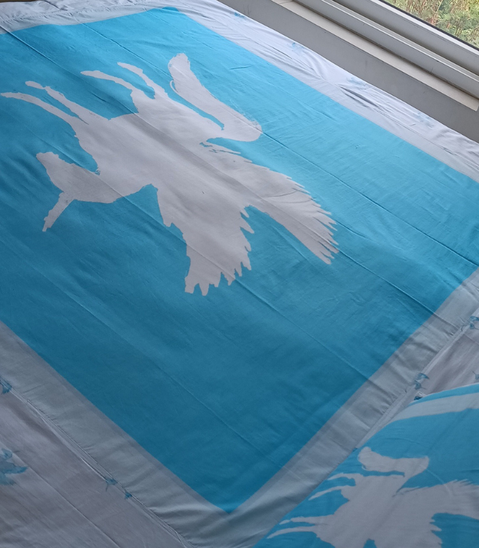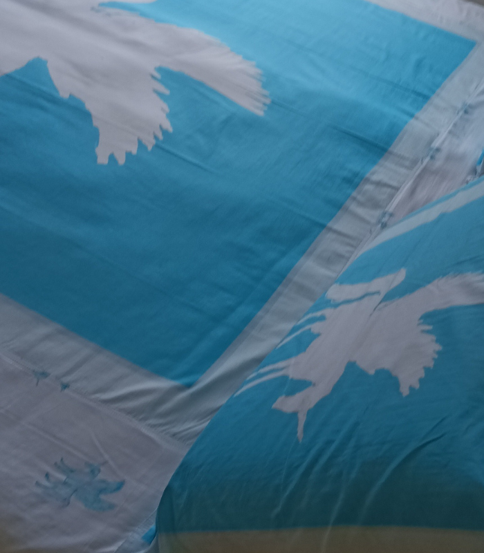 Sky Blue and White Pegasus Print Bed Sheet in premium cotton poplin fabric—a symbol of elegance and freedom. This double-size digital print bed sheet with majestic white Pegasus design adds a serene and luxurious charm to your bedroom.